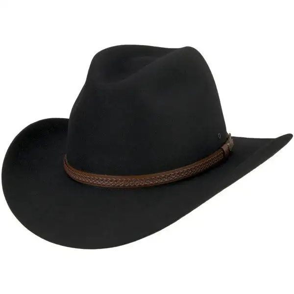 The Kiandra hat, from the Akubra Hats range of town to country hats. It is named after a town in the Kosciusko National Park in New South Wales, Australia. The crown, about 4 inches high at the front, 4-1/2 inches at the sides, has a center crease with front pinch. This authentic Australian hat has a 3 inch raw edge brim with rolled sides, down in front and rear. Imperial Quality, pure fur felt. It is fully lined, with chin strap hooks set inside the crown for easy attachment of a chin strap. Reeded roan leather sweatband. The ornamental band has a braided overlay in the center, bronze Akubra nameplate. UPF rating 50+. Made in Australia. Pure fur felt — Akubra’s Imperial Quality. Pre-creased center crease crown. 4″ high at the front, 4-1/2″ high at the sides. 3″ brim, raw edge. Ornamental band with braided overlay. Fully lined. Reeded roan leather sweatband. Chin strap hooks. Colors are Dark Fawn, Black or Sand. Sizes 6-3/4 through 8. This Hat is Made in Australia by Akubra .