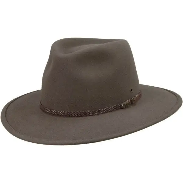 The Traveller is the Akubra to accompany you on your travels. It is the no-worries hat — put it in your bag or briefcase, or in the overhead bin in the airplane. It is made in Akubra’s new Pliofelt, a pliable pure fur felt. The crown is 4-3/8 inches high, the welted brim with memory insert 3″ wide. The 5/16 inch ornamental band has a brass buckle. The crown is unlined with a fabric sweatband to allow the hat to be packed. There are hooks set inside for easy attachment of a chin strap. The Traveller conforms readily to your head shape on the first wearing. UPF rating 50+. Made in Australia. Pliofelt — crushable pure fur felt Pre-creased pinched telescope crown 4-3/8″ to peak 3″ brim, welted edge Ornamental band Unlined Fabric sweatband Chin strap hooks Color is Regency Fawn Sizes 6-7/8 through 7-5/8 Akubra’s Lifestyle Collection Crushable Made in Australia by Akubra