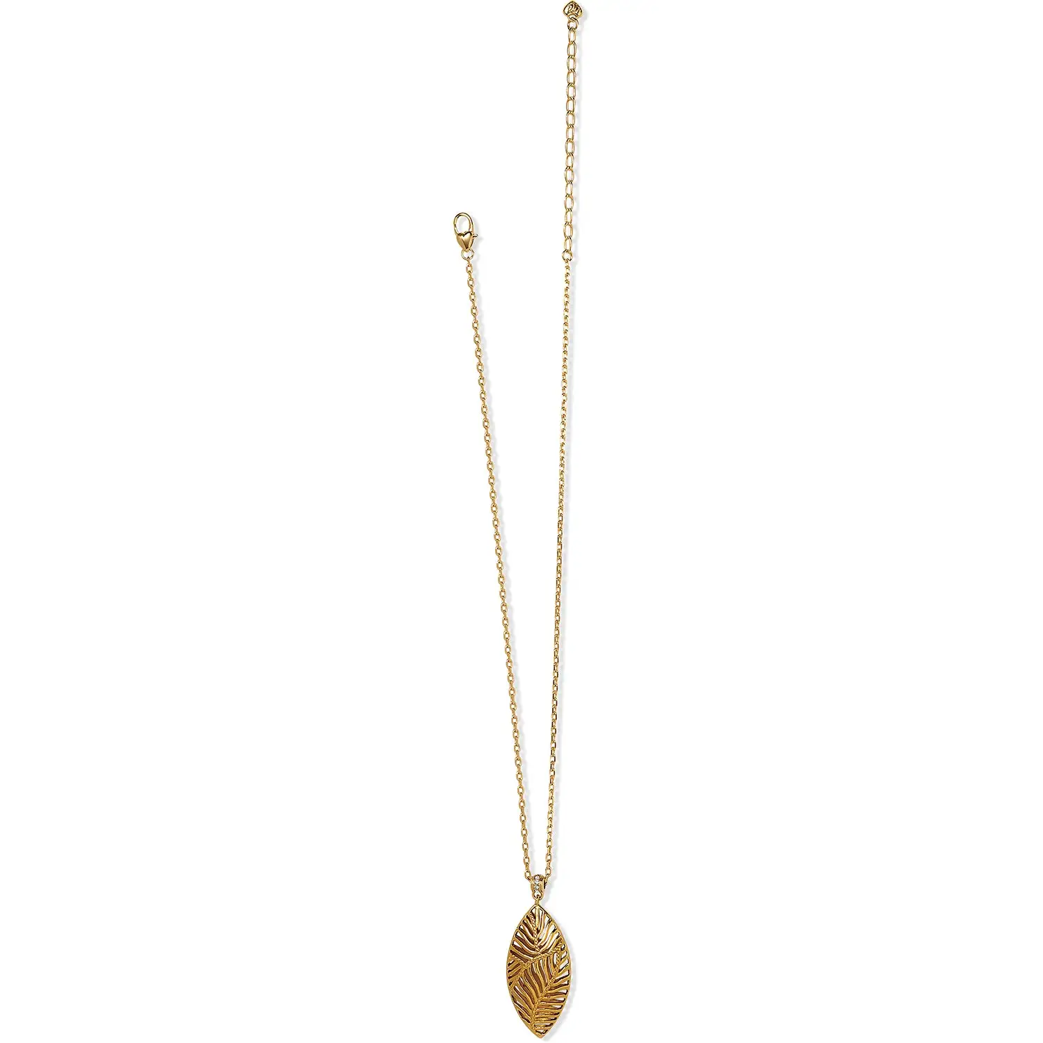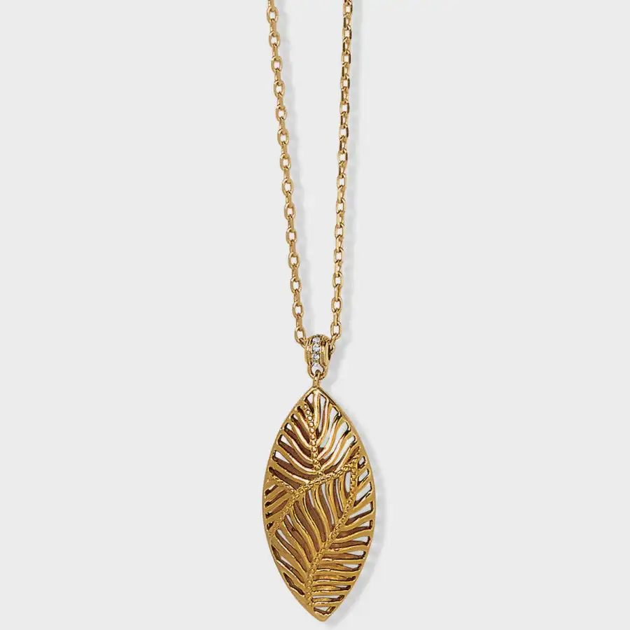 Palm leaf fronds feather out and overlap in nature, just like they do on this bold gold statement pendant necklace with pierced details. Friends will wonder where you find such earthly treasures. Just tell them I got these at Saratoga Saddlery.