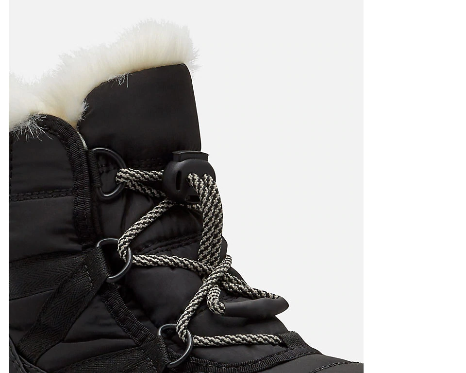 UPPER: Waterproof nylon upper and PU coated synthetic overlays. Faux fur cuff and fleece lining. Waterproof bootie construction. - FOOTBED: Removable molded PU-like EVA footbed, textile topcover.