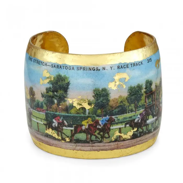 Saratoga Race Vintage Gold Cuff Bracelet Hand Made in USA Saratoga Racetrack Jewelry