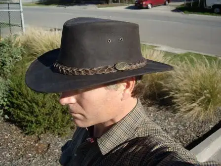 This is a wonderful lightweight, waterproof, and stylish aussie hat. 100% soft kangaroo leather, produced in Australia and made to last. Very comfortable on your head! www.OutbackSurvivalGear.com