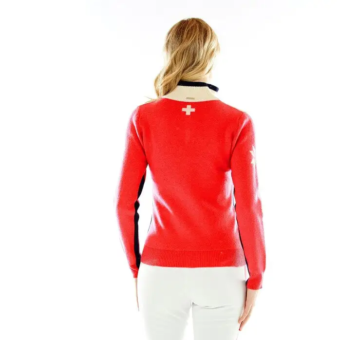 Rib-knit hem, cuff & collar. Snowflake design, contrast tipping at collar & cuff.