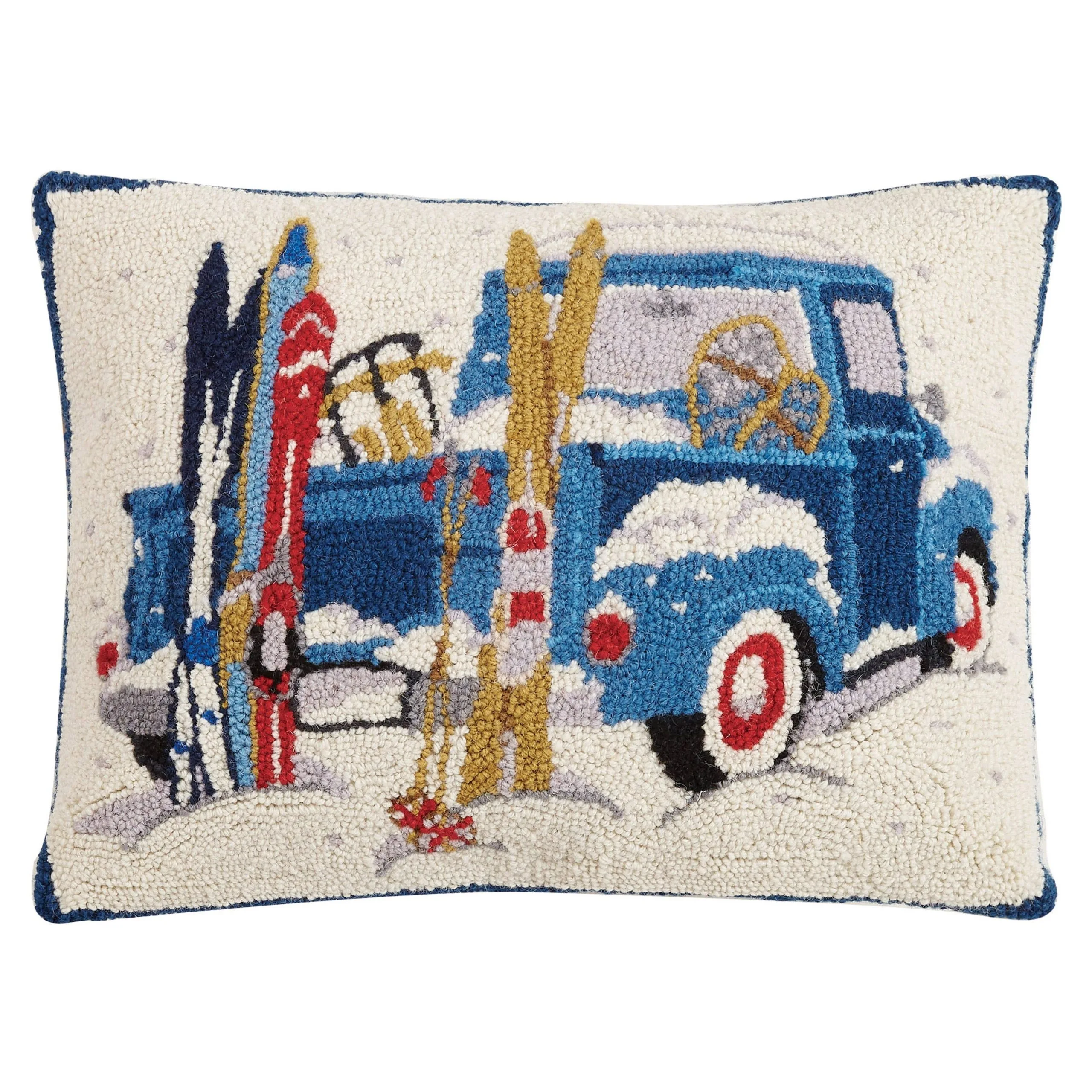 ★100% wool hooked rectangular accent pillow ★100% cotton velvet backing ★Includes polyester insert, zipper closure ★16×22 lumbar throw pillow ★Designed by Mary Lake Thompson
