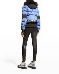 - Sporty elements of subtle color blocking and placement create added interest in a stylish modified crop cut jacket with knitted extension waistband for maximum coverage and protection