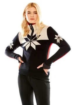 M. MILLER M.Miller Neige Snowflake Extra Fine Half Zip In BLACK ON SALE!